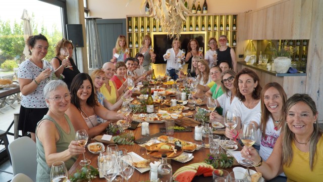 Tras recoger las uvas manualmente, lo volcaron en la prensa y pudieron probar el mosto flor. Entre risas, complicidades y muchas emociones terminaron la mañana con un "brunch", donde también disfrutaron de la actuación del showman Jordi LP.