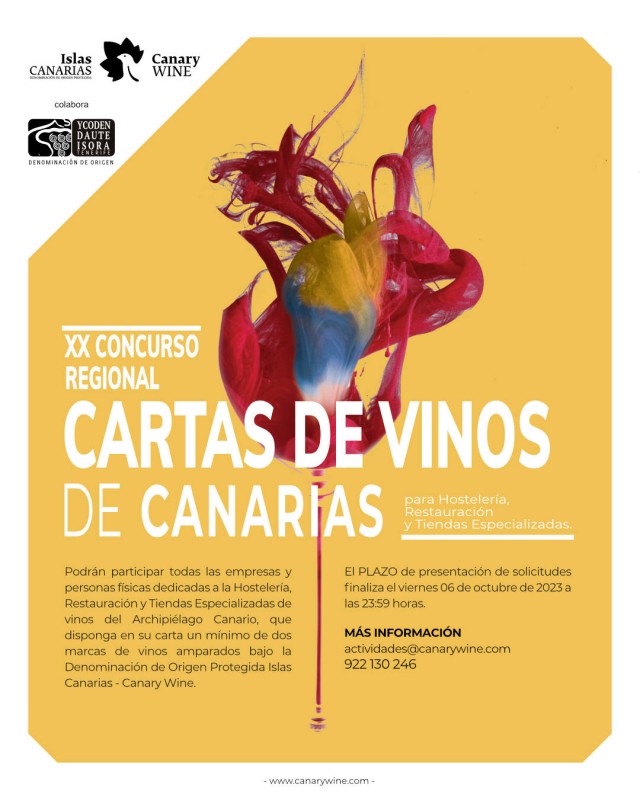 El Órgano de Gestión de la Denominación de Origen Protegida Islas Canarias – Canary Wine, en colaboración con la Denominación de Origen Ycoden Daute Isora, pone en marcha la XX Edición del Concurso Regional de Cartas de Vinos para Hostelería, Restauración y Tiendas Especializadas con la finalidad de mejorar y aunar esfuerzos en la presentación y contenidos de las cartas de vinos de los restaurantes canarios, para que tango clientes como consumidores se puedan sentir más informados y conocedores de los vinos de nuestro archipiélago.