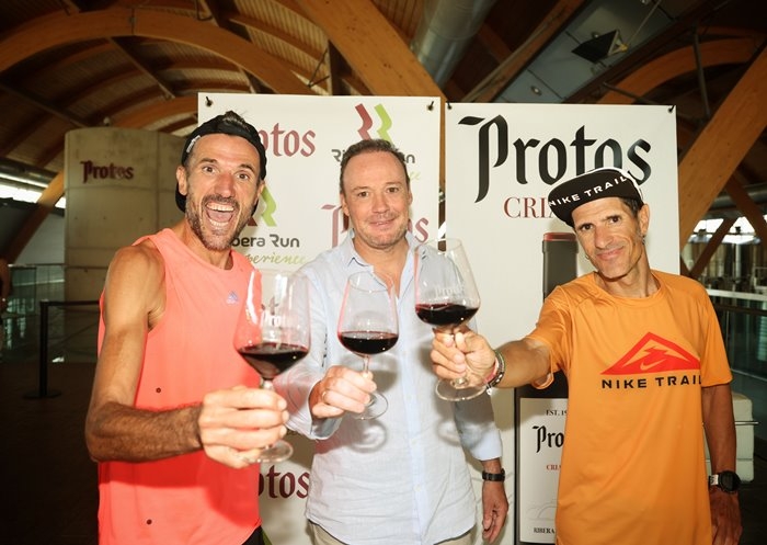 Para culminar el evento de presentación, Chema Martínez, junto al director general de Bodegas Protos, Carlos Villar, y el director de la Ribera Run Experience, José Antonio de Pablo, brindaron con un vino Protos Crianza 2019. Cabe señalar que Bodegas Protos es una de las paradas del recorrido de la Ribera Run Experience, lo que lo convierte en un punto de interés para quienes participan.