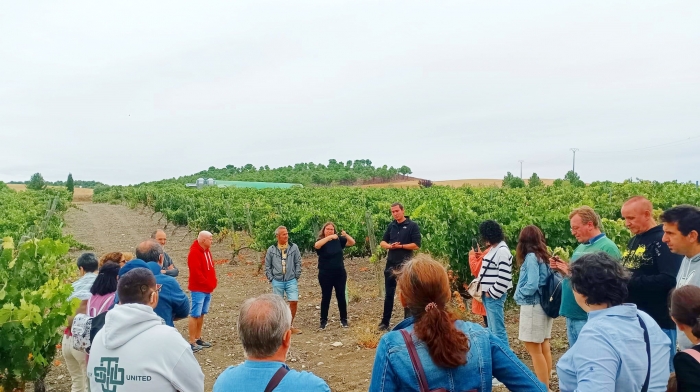 En esta jornada especializada, quienes asistieron tuvieron la fortuna de ser instruidos sobre los aspectos esenciales de la viticultura, desde el cuidado y cultivo de la vid hasta los procesos que transforman la uva en vino. Juan Príncipe, perteneciente a la tercera generación de esta reconocida bodega en la DO Cigales, compartió sus conocimientos y experiencia al guiar a los 30 participantes por las diferentes etapas que transforman a la vid y su fruto, conduciéndolos después por la moderna bodega, donde reveló detalles sobre la elaboración, crianza y cata del vino.