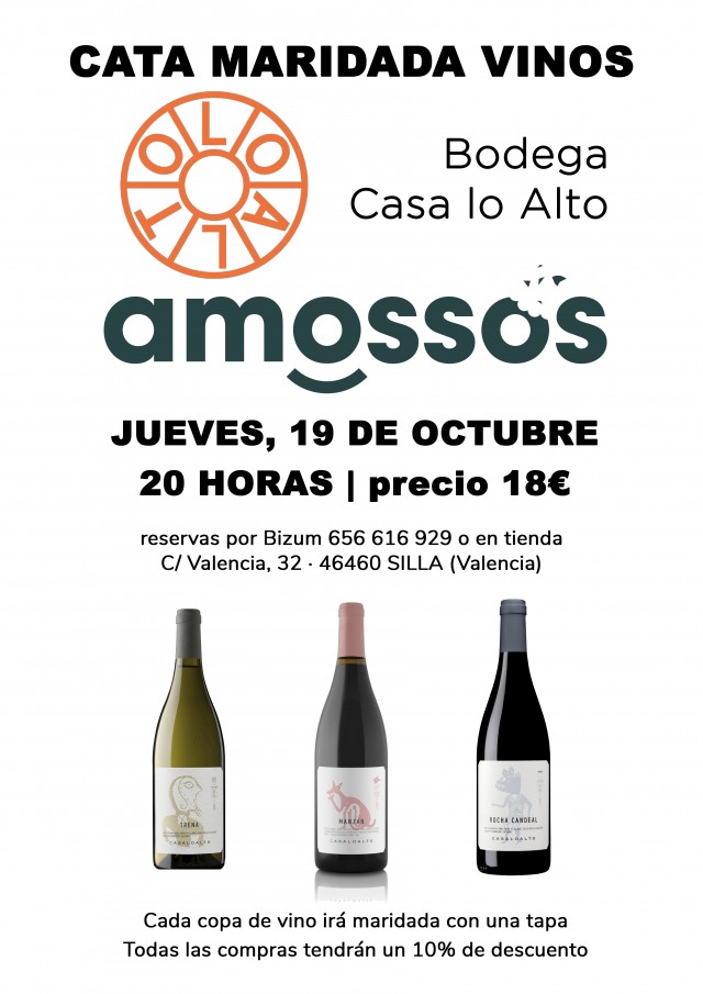 Es por eso que puedes aprovechar tu inquietud enológica viniendo a AMOSSOS para participar en nuestras catas de vino valenciano, donde los enólogos de cada bodega nos explican sus proyectos. La primera la celebramos el jueves 19 de octubre a las 20 horas en nuestra tienda física, situada en la calle Valencia, 32 de Silla (Valencia). Puedes reservar enviándonos un whatsapp al 656616929 y abonando tu cata por Bizum.
