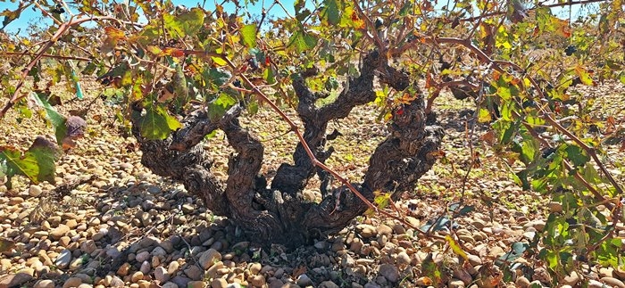 Antes de conocer el trabajo en bodega, Daniel Sevilla, propietario y enólogo, me lleva en un recorrido en el que conocer las arraigadas tradiciones de esta población. Su iglesia, la Ermita de la Virgen de la Cabeza, punto más alto de esta denominación, y varias casas palacio construidas tres siglos atrás, reflejo todo ello de la época de esplendor que vivió Pozoamargo en el S. XVIII. Tras la parte cultural, nos dirigimos al viñedo. Varias localizaciones en las que la familia cultiva la vid, algunas de ellas centenarias, de variedades autóctonas; principalmente Bobal y Cencibel (Tempranillo), y otras menos comunes como Rojal o Cojón de Gato en tintas, y la escasa variedad autóctona blanca Pardilla. Cultivo de secano en suelos de cascajos sobre una capa de arena que retine la humedad, suelos estos que fueron formados millones de años atrás por el curso de Júcar a su paso que caracterizan a esta denominación. Este año el "pedrizo" ha dejado su huella tanto en la vid como en los cultivos que la acompañan; olivares, frutales, campos de hortalizas y tierras de labranza. Un mal año, de muchos destrozos, en el que lo que se ha salvado, al menos, presenta muy buena calidad.