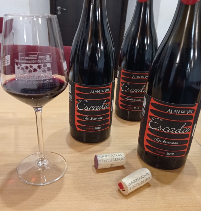 El petisco fue empanada de "zamburiñas", aportando pinceladas dulces, tan características de los moluscos bivalvos.Y como no hay 2 sin tres, llega Alan de Val Escada Lembranzas 2019, cepas centenarias de garnacha tintorera que tan a la perfección se ha mimetizado con estas tierras. Esta bodega se encuentra en A Rúa , entre "pedrazáis". 15 meses de maduración en distintas barricas de roble francés con distintos tuestes que a posteriori se ensamblan para mostrarnos complejidad. Tanino presente, carga frutal, especiado y balsámico.