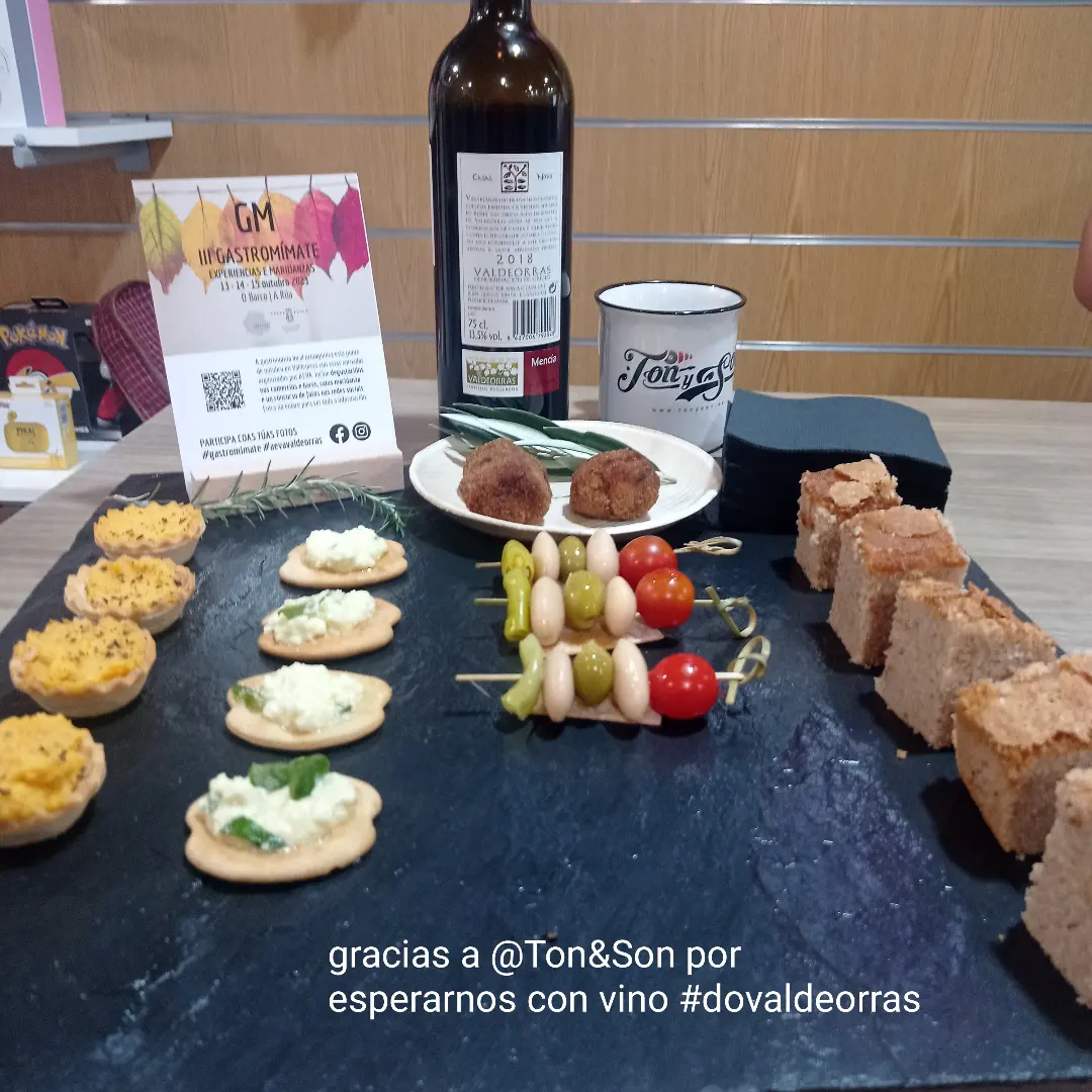 De los establecimientos que pude visitar, Ton & Son nos propuso para "maridanza" un Casal Novo mencía; en estética Pamen compartimos godello de Godeval. Los bocados con vinos D.O Valdeorras son bocados más placenteros.