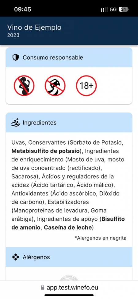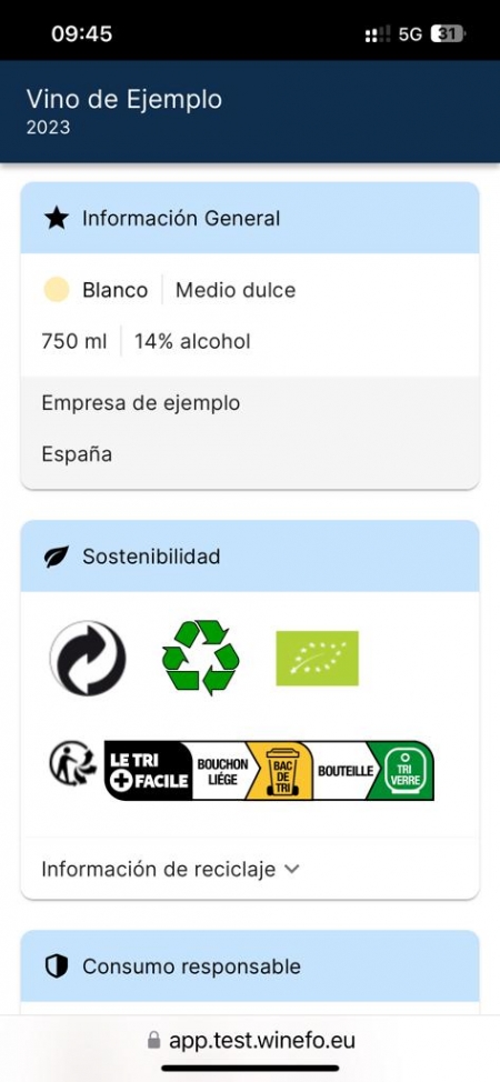 Además, la información tiene que estar disponible en los 24 idiomas de la UE, ya que tiene que estar disponible en el idioma del consumidor y deberá estar vigente y en activo durante todo el tiempo de vida de la botella en el mercado y siempre con la información actualizada.