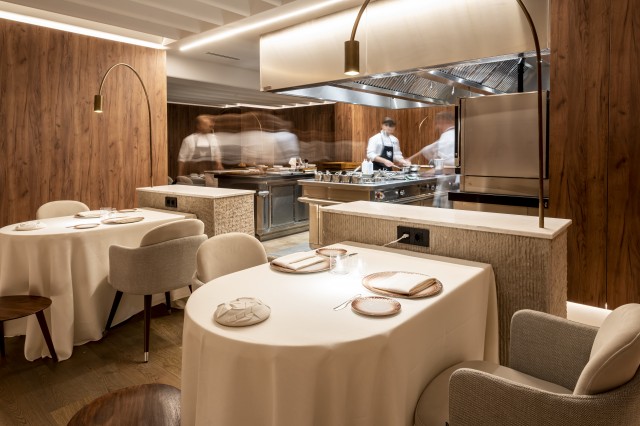 Adentrarse en Marcos es disfrutar de una atmósfera de calidez y comodidad gracias a las maderas nobles, la iluminación tenue y los pequeños detalles. El interiorismo, bajo la firma de Alejandra Pombo, invita a explorar un espacio acogedor impregnado de exquisita calidez, mientras que la bodega, con más de 750 referencias nacionales e internacionales, añade un toque de exclusividad y sofisticación.