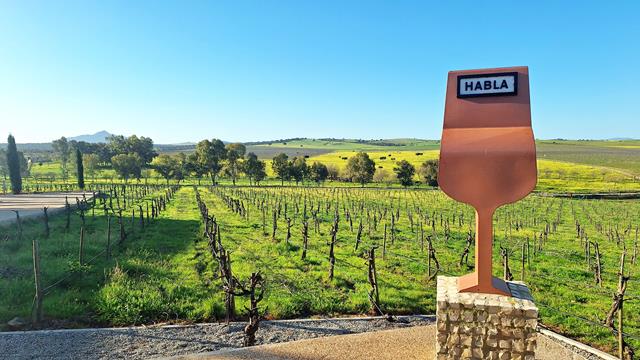 Tras la vistita es momento de disfrutar nuevamente de los vinos HABLA. El escenario es el restaurante de la bodega, un espacio con vistas a los viñedos en el que el menú "HABLA Cosmos nº1 La Luna" diseñado para esta ocasión, es acompañado por varios vinos de la bodega. HABLA del Mar, un blanco muy especial, de esmerada y compleja elaboración, salino, intenso, con una fina y agradable burbuja gracias a una segunda fermentación submarina en depósitos bajo el mar. Un vino que sorprende. HABLA Rita, un rosado elegante, complejo y muy aromático, sus Nº 32 y Nº 29 dos elaboraciones de uva tinta. Nº 32 es un monovarietal de Syrah con gran frescura, muy frutal, amplio y largo, y Nº 29 un coupage de Malbec, Cabernet Sauvignon y Cabernet Franc complejo, muy bien ensamblado, redondo y amplio, vinos de calidad para unos platos originales con un toque astronómico como Luna Crocante rellena de salmón marinado, Cometa de puerro con nebulosa de tomate de Miajadas u Ovni de rabo de toro en Marte Cremoso...etc, por citar algunos. Un sorprendente maridaje que une el trabajo de la bodega a través de sus elaboraciones con la creatividad y originalidad en los platos. Vinos de calidad acompañados por productos de calidad, de cercanía, de Extremadura.