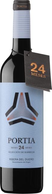 "Portia 24 meses" es un vino donde se ha trabajado con gran esmero desde la viña a la botella para que la fruta conviva en perfecto equilibrio con los matices de la crianza en barricas francesas. Consiguiendo un vino muy equilibrado con un final largo en boca y un buen cuerpo, moldeado por las uvas tempranillo provenientes de los viñedos situados en la zona del triángulo de oro de la D.O. Ribera del Duero. Una buena elección sin duda alguna.