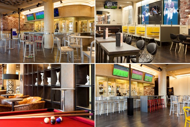 Nueve pantallas distribuidas por todo el espacio para no perder detalle desde prácticamente cada ángulo. Una pantalla gigante de 86 pulgadas. Billar, dardos... El mejor Sports Bar, un clásico de la cultura estadounidense, se encuentra en Madrid. Todos los partidos, carreras, combates y eventos deportivos en un solo espacio, con esa atmósfera típica de bar de deportes que encontrarás solo en el Madrid Marriott Auditorium, ubicado en la planta baja del hotel, junto a la recepción principal y con horario de 7pm a 1am.
