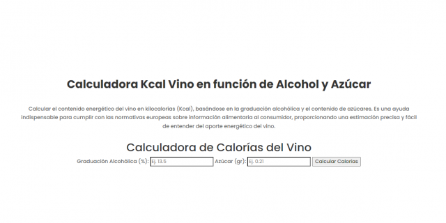 La calculadora es intuitiva y fácil de usar, asegurando que los productores puedan calcular con el contenido calórico de sus vinos.
