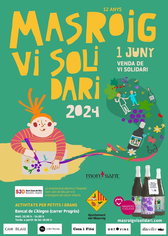 Masroig Vi Solidari nació en 2011, cuando siete bodegas del Masroig decidieron unir parte de su producción para elaborar botellas solidarias. Estas botellas se venden en la feria con el objetivo de recaudar fondos para la lucha contra el cáncer infantil. En las once ediciones anteriores, la iniciativa ha conseguido recaudar 315.000 euros, destinados a avanzar en terapias personalizadas para niños que no responden a tratamientos estándar.