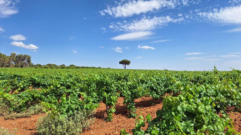 Javier, Técnico Agrícola de formación, es quien dirige las labores en unos viñedos que cuentan con una edad media de más de 30 años, y que antes trabajaron sus padres. En torno a la propia bodega cultivan en ecológico un total de 80 ha. que han ido planificando según las necesidades mediante el sistema de espaldera y con prácticas sostenibles. Entre ellas el uso de ozono para garantizar el mínimo contacto de productos químicos con las viñas. Variedades autóctonas como Tempranillo (Cencibel) y Bobal, y foráneas como Sauvignon Blanc y Viognier en blancas, y en tintas Cabernet Sauvignon, Garnacha Tintorera, Syrah, Petit Verdot, Malbec o Merlot, variedad esta última la que les ha valido el reciente reconocimiento, son cultivadas en ecológico, ellos se definen como ecobodega gracias a las buenas prácticas empleadas y el respeto por la viña, origen de sus vinos. También poseen vendimiadora en propiedad algo que les permite arrancan sin demora alguna la vendimia llegado el momento justo de maduración de la uva que emplearán en sus elaboraciones.