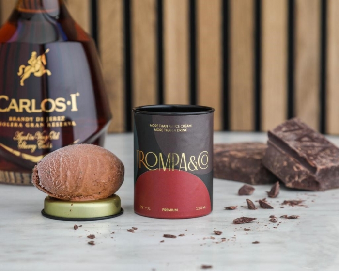Trompa se caracteriza por la autenticidad para crear helados 100% artesanales y sin gluten, siendo siempre innovadores con sus recetas. Su proyecto, nacido en 2021 en Barcelona, va más allá y en su proceso de creación centran los esfuerzos en la propuesta de helados con licores premium. "Es una manera diferente de tomar una copa con amigos, más refrescante y disfrutable en más contextos", declara Marc Ribalta de Trompa & Co. Apostando siempre por la sostenibilidad, valor que comparte con Carlos I, trabaja en el cuidado de todos los pasos en el proceso de producción, anuncian que por cada bolsa de cacao invertida para hacer el helado, 10 árboles de cacao serán plantados.
