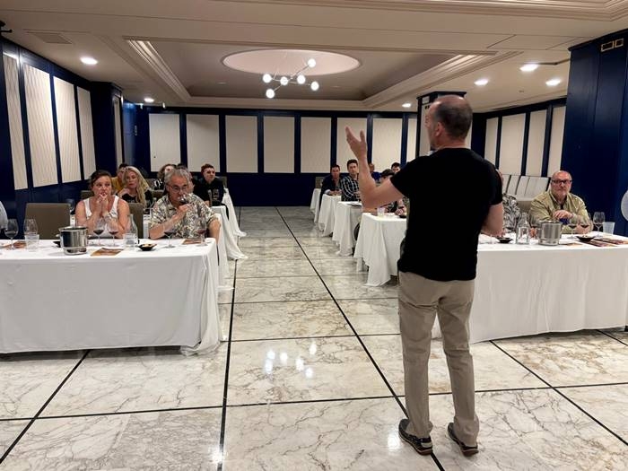 El Consejo Regulador de la D.O. Valdeorras llevó a cabo este miércoles, 3 de julio, una cata magistral en Bilbao, organizada por la Asociación de Sumilleres de Vizcaya. El evento, celebrado en el Hotel Ercilla, contó con la presencia de entre 35 y 40 profesionales del mundo del vino. Jorge Mazaira, director técnico del Consejo Regulador y encargado de la cata, destacó la participación de una selección de vinos singulares de la D.O. Valdeorras.