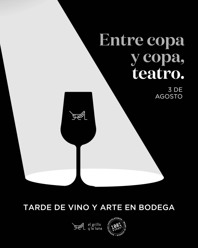 «Entre copa y copa, teatro» tendrá lugar en las nuevas instalaciones de Bodegas El Grillo y la Luna y se podrá disfrutar de dos pases: de 18 a 19:40 horas y de 18:30 a 20:20 horas. En cada uno de las sesiones se ofrecerán dos vinos, 12 Lunas blanco y el premiado 12 Lunas garnacha, y bombones de La Paca, establecimiento de Huesca, que ha querido colaborar en esta acción y que tiene al frente a Raúl Bernal, mejor maestro chocolatero de España, miembro del Colectivo 21 Brix y embajador de Chocovic.