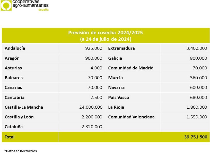Cooperativas Agro-alimentarias de España ha estimado que la vendimia alcanzará los 39,7 millones de hectolitros, un 20% más que el año pasado. Esta cifra preliminar se debe, en gran medida, al aumento de la producción en regiones clave como Castilla La Mancha y Extremadura. Sin embargo, la producción final dependerá de la evolución de las condiciones climáticas, lo que podría influir en el volumen total.