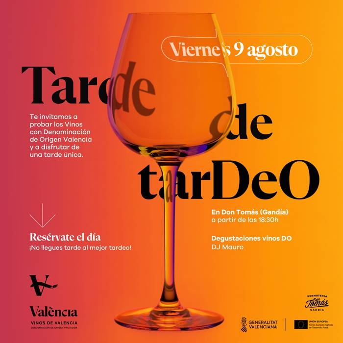La Denominación de Origen DO Valencia ha organizado el próximo viernes, 9 de agosto, a partir de las 18:30h en la vermutería Don Tomás de Gandía, un nuevo Tardeo. Durante esta tarde, la música del DJ Mauro acompañará la degustación de una selección de vinos especialmente escogidos para la ocasión. Este evento se llevará a cabo en uno de los locales más destacados de Gandía, conocido por su combinación de gastronomía, cultura y ocio. El objetivo es invitar al público local a descubrir y disfrutar de los vinos de la DO Valencia.