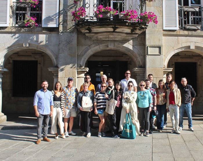 La expedición comenzó su recorrido en el Pazo de Mugartegui, sede del Consejo Regulador de la Denominación de Origen Rías Baixas, donde participaron en una charla introductoria y en una cata en forma de túnel del vino. Allí pudieron probar 39 marcas que incluían distintas variedades y añadas, desde la cosecha de 2012 hasta la de 2022, incluyendo vinos elaborados en barrica y monovarietales como la Loureira. Esta experiencia les permitió apreciar la capacidad de envejecimiento de los vinos de Rías Baixas, un factor que a menudo es pasado por alto en los mercados extranjeros.