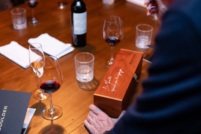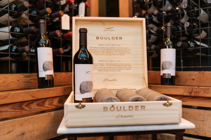 El vino es muy especial y concentrado porque la roca le da unas notas un poco flinty y al dejar la cubierta totalmente intocada con las propias hierbas que crecen ahí como tomillo y otras que son bastante aromáticas empezamos a ver que había algo distinto. Así que en el 2021 hicimos nuevamente la cofermentación y le dimos una guarda en barrica de un año con un 60/70% de barrica nueva y el resto de segundo y tercer uso. Y de ahí lo pasamos a fudres de 500 litros para alejarnos de los aromas a madera pero seguir con la crianza. Después lo guardamos por 18 meses para ver cómo se comporta el vino en la botella. Y después hicimos varias catas a ciegas con los vinos de más alto rango del mercado argentino y trajimos algunos productos de alto rango chileno y se comportó tremendamente bien el vino. Lo llamamos Boulder porque en la traducción del inglés al castellano significa roca grande.