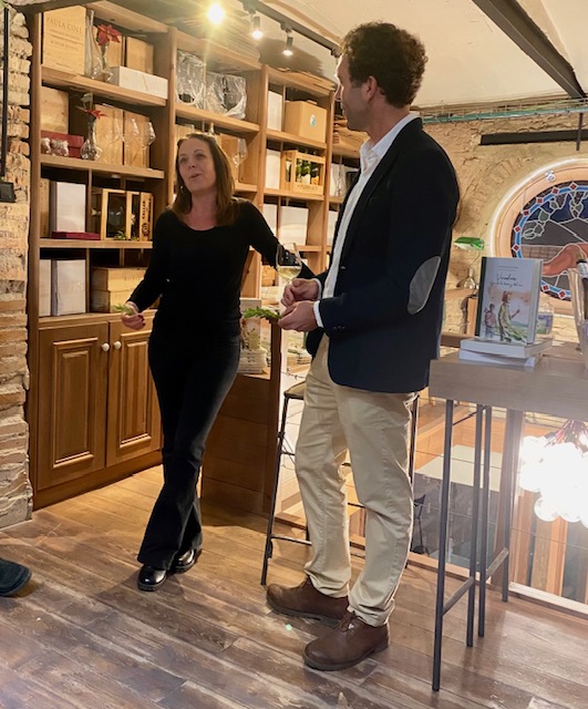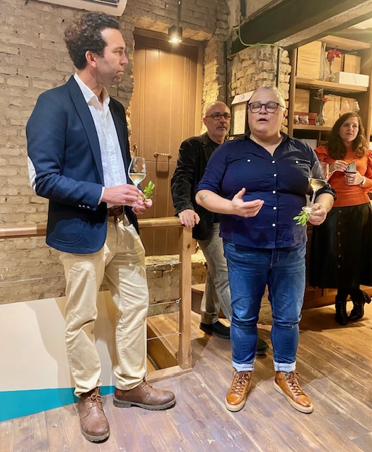 El ambiente, como si ya el sitio no fuera suficiente, se encargó de ponerlo aún más bonito Irene del Moral, de la empresa de distribución de vinos Delatierra. Esta profesional del sector, de sonrisa eterna, forma parte de una de las distribuidoras más prestigiosas de la ciudad que, bajo la dirección comercial de Hiniesta del Toro, tiene presencia en buena parte de la hostelería de Sevilla. Irene nos hizo un recorrido por la historia de la bodega, incidiendo en la figura de Alejandro Muchada como hilo conductor, además de ir amenizando la presentación del libro con preguntas que ayudaron a guiar el acto hasta el final de forma magistral. Esta meritoria labor de conducción la compaginó con la profesionalidad que le caracteriza haciendo posible que no hubiera una copa vacía en ningún momento del evento, regando las intervenciones con los vinos que nuestro protagonista de la tarde trajo desde Sanlúcar de Barrameda.