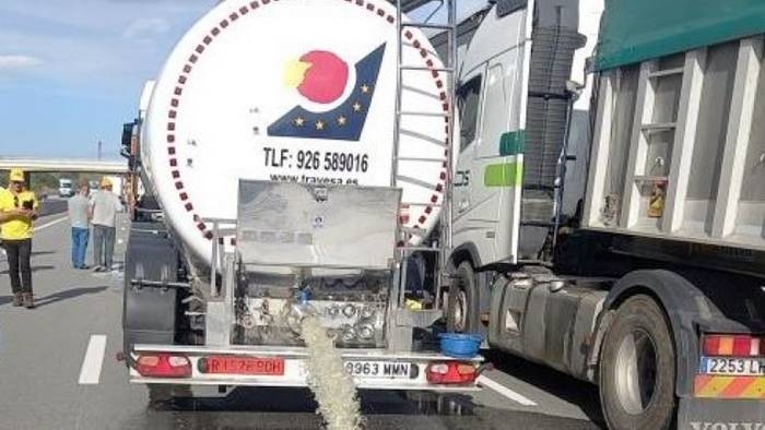 La tensión entre agricultores franceses y transportistas españoles ha escalado nuevamente con un incidente que pone de manifiesto la vulnerabilidad de los productos españoles en las fronteras europeas. Ayer, dos camiones cisterna pertenecientes a la empresa Travesa, con sede en Campo de Criptana, Ciudad Real, fueron interceptados por agricultores franceses en la frontera entre ambos países. Los manifestantes vaciaron completamente las cisternas, lo que resultó en la pérdida de 100.000 litros de vino blanco, derramados sobre la carretera.
