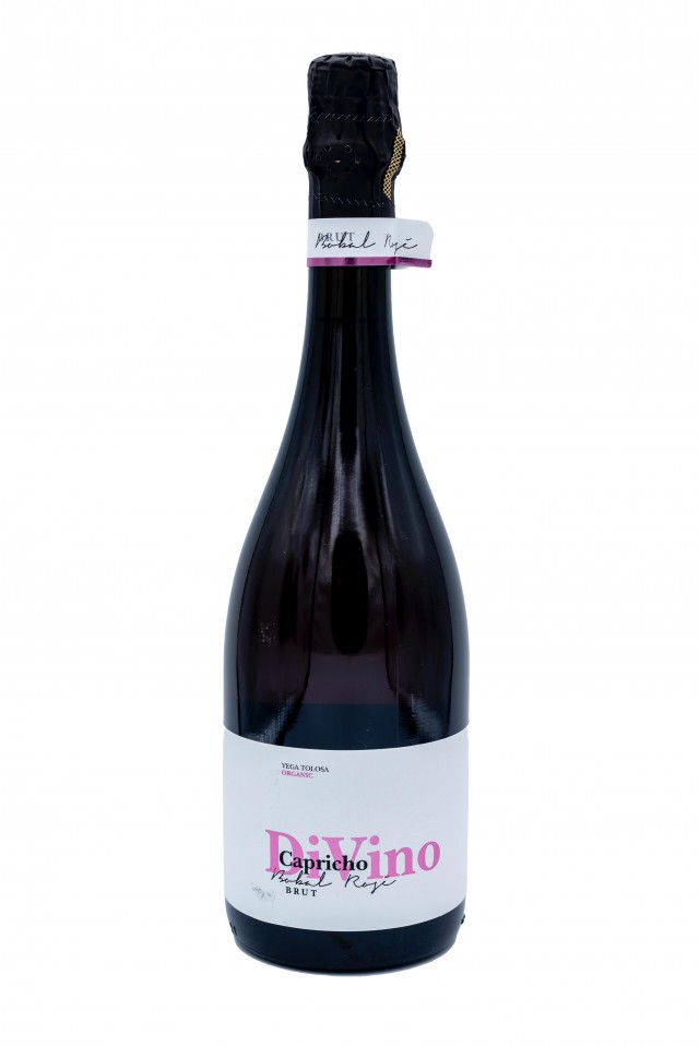 Capricho DiVino, un nombre muy navideño, se elabora con la variedad autóctona Bobal procedente de los viñedos que la familia tiene en la DO Manchuela, alrededor de Casas Ibáñez, el pueblo donde se ubica la bodega. De las casi 90 hectáreas que la bodega tiene de esta variedad, se han seleccionado las parcelas del paraje El Horcajuelo - un viñedo de 40 años cultivado en vaso- para elaborar este espumoso Brut Nature.