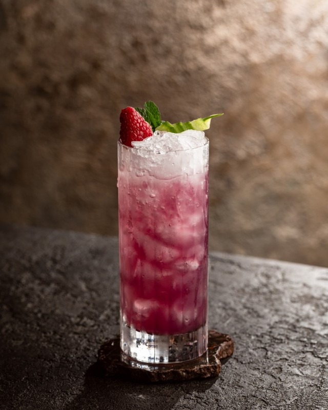 Introducir todos los ingredientes en una coctelera y agitar enérgicamente. Una vez hecho, realizar un doble colado. Servir en un vaso alto mediante un doble colado y decorar con una fina tira de pepino, una ramita de menta fresca y una frambuesa.