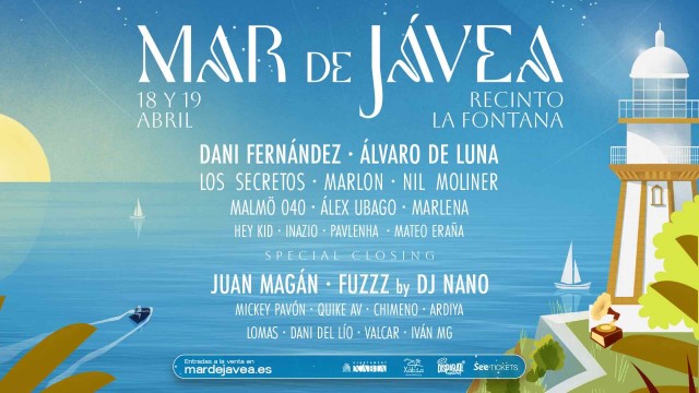 Álvaro de Luna y Dani Fernández, cabeza de cartel de la nueva edición de Mar de Jávea que también contará con Dj Nano, Hey Kid, Inazio, Juan Magán, Álex Ubago, Los Secretos, Malmö 040, Marlena, Marlon y Nil Moliner. La ciudad alicantina se prepara para recibir a más de 16.000 asistentes los próximos 18 y 19 de abril, en pleno puente de Semana Santa.