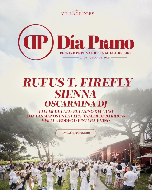 Estos dos grupos serán el colofón a un día de lleno de actividades en viñedo y en bodega, en el que los prunolovers podrán disfrutar un año más de un día único. Ya están disponibles las entradas del Día Pruno - 69€ - que incluyen dos actividades dirigidas, visita libre a la bodega, un pincho de lechazo (típico de esta zona), café, postre y tres copas de vino y los conciertos de Sienna y Rufus T. Firefly. Además, todas las actividades estarán amenizadas con la música del DJ ÓscarMina.