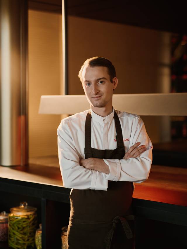 Algunos de los platos del menú incluyen haggis vegetariano con mayonesa especiada con whisky, caballa curada al amontillado, pastrami con brioche al vapor y chucrut, taco con ensalada de rábano y mango, y paté de pollo con pasas y albaricoque. Además, se ofrecen platos como The Macallan Barley, que resalta los ingredientes del whisky, y From the Cask to the Chocolate, un postre que combina whisky y chocolate.