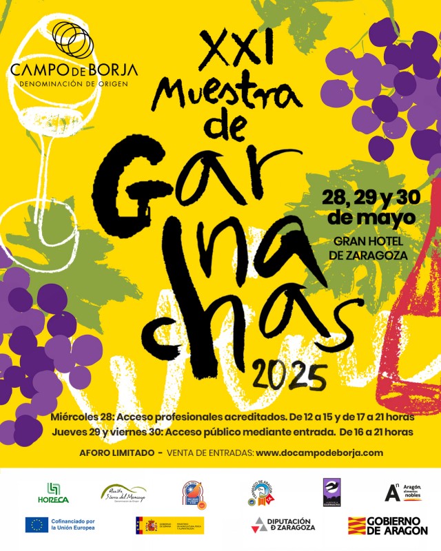 La Denominación de Origen Campo de Borja presentará el próximo miércoles 30 de abril, a las 10.30 en el salón La Rotonda del Gran Hotel de Zaragoza, la XXI Muestra de Garnachas, la consolidada cita enológica que cuenta con la presencia de sus doce bodegas (Bodegas Ainzón, Alto Moncayo, Aragonesas, Borsao, Cabal, Cooper Cellars, Morca, Pagos del Moncayo, Palmeri Sicilia, Picos, Román y Ruberte) y que mostrará a través de más de 100 vinos diferentes desde sus referencias más emblemáticas hasta las más novedosas.