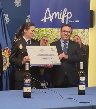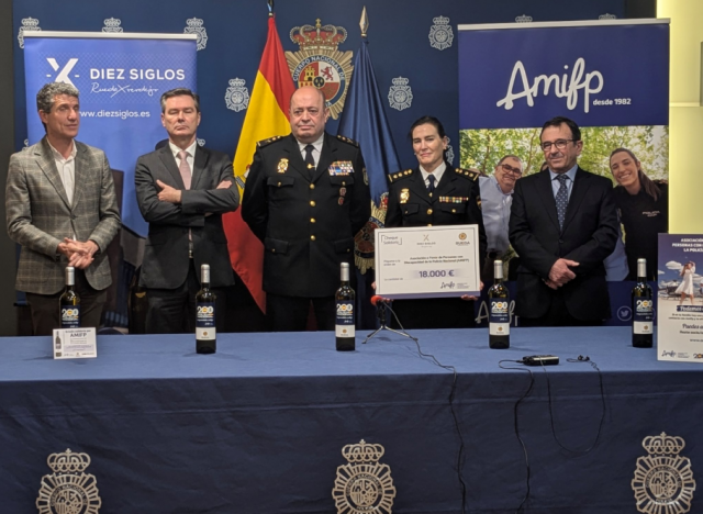 La bodega Diez Siglos de Verdejo ha entregado un cheque solidario de 18.000 € a AMIFP, Asociación a favor de personas con discapacidad de la Policía Nacional, gracias a la campaña "Brindis Solidario por AMIFP".