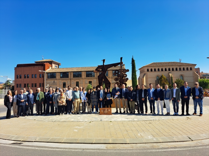 El Ayuntamiento de Barbastro y la Denominación de Origen Protegida Somontano han inaugurado una escultura en homenaje a Mariano Beroz Bandrés, fallecido en enero de 2022, quien presidió el Consejo Regulador de la DOP Somontano entre 1993 y 2017. El acto tuvo lugar ayer por la mañana en la rotonda situada frente a la sede de la denominación, donde se ha instalado la obra “Hombre con racimo”, creada por el artista aragonés Julio Tapia.