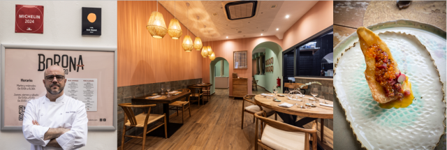 Borona Bistró fue galardonado con un sol de la Guía Repsol en 2024 y figura entre los restaurantes recomendados por la Guía Michelin. En su actual ubicación en el centro de Cáceres, el restaurante conserva el espíritu íntimo y acogedor con el que nació: una sala para 30 comensales, un servicio cálido y cercano, y una propuesta que huye del artificio para reivindicar el sabor, la memoria y el arraigo.