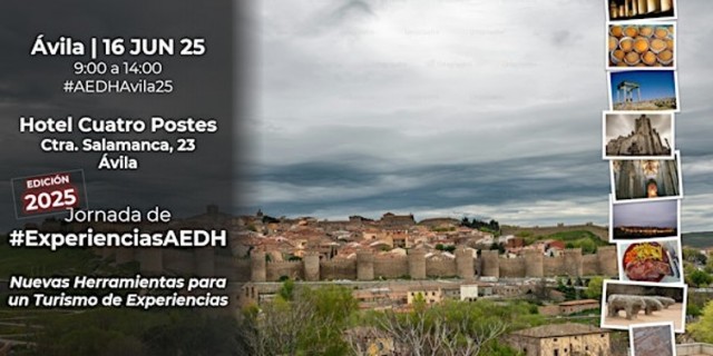 El próximo 16 de junio, Ávila acogerá uno de los eventos más innovadores del sector turístico nacional: la jornada 'Nuevas herramientas para un Turismo de Experiencias', organizada por la Asociación Española de Directores de Hotel (AEDH). La cita tendrá lugar en el Hotel Cuatro Postes.