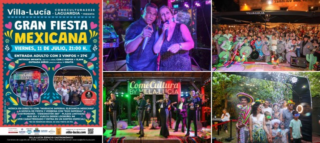 ¡Prepárate para una explosión de sabor y cultura! Villa-Lucía arranca sus eventos veraniegos su "¡Gran Fiesta Mexicana!", el evento inaugural de 'ComeCultura'. Este innovador proyecto fusiona la enogastronomía local y de Km.0 con una vibrante inmersión cultural. La velada estará amenizada con auténticas rancheras, interpretadas por Mariachi Imperial Elegancia Mexicana, así como la mejor música de baile y fiesta con el Dúo Imperial, mientras los asistentes disfrutan de exquisitas propuestas culinarias.
