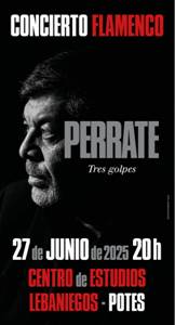 El flamenco es una expresión artística que forma parte de la lista de Patrimonio Cultural Inmaterial de la UNESCO, y por eso en la Comarca de Liébana han querido acercar este arte al público con un ciclo de actuaciones. El 27 de junio, será el turno de Perrate y sus 'tres golpes', en el Centro de Estudios Lebaniegos de Potes, a las 20:00. Este ciclo de conciertos está organizado por dos empresas locales; Bodega Cayo y La Relocha Gourmet, con el patrocinio de la Fundación Camino Lebaniego y el Grupo de Acción Local Liébana.