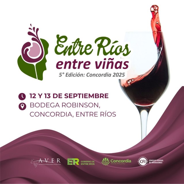 La 5º Edición de "Entre Ríos, Entre Viñas", el encuentro que celebra el vino entrerriano se celebrará en Bodega Robinson, Concordia, el próximo 12 y 13 de septiembre (de 19 a 00). Será un viaje de aromas, sabores y sentidos que revalorizarán y honrarán la historia vitivinícola de Entre Ríos.