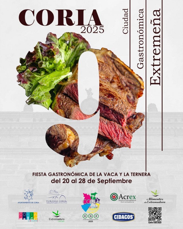 Para dar a conocer este espectacular manjar a los recién llegados y para deleitar de nuevo a quienes ya conocen su sabor y propiedades, una quincena de establecimientos hosteleros va a darle una vuelta a sus platos, del 20 al 28 de septiembre, dentro de la Fiesta Gastronómica de la Vaca y la Ternera, en las modalidades de Menú Fin de Semana (20 y 21 de septiembre), a laCarta (del 22 al 28 de septiembre) o en la Ruta de Tapas (del 26 al 28 de septiembre), en las que los hosteleros de Coria "jugarán" con los sentidos de los comensales, ofreciendo un producto sugerente, versátil y muy apreciado por quienes disfruten de una magnífica velada sentados a la mesa en la novena ciudad más antigua de España...