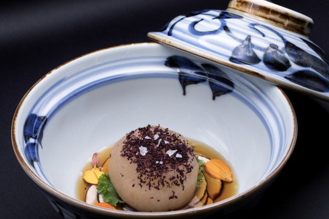 El dominio del robatayaki (parrilla japonesa a carbón) permite disfrutar de piezas como el sakana kume niniku, pescado blanco con salsa cítrica, o un extraordinario wagyu A5 de Miyazaki, probablemente el más exclusivo del mercado. Pero también hay espacio para reinterpretaciones de la cocina madrileña: yakitoris de callos de wagyu, oreja de cerdo, mollejas de cordero, o un original bocata de calamares en versión fina con emulsión de ajo negro y migas crujientes. El tartar de atún con huevos rotos completa un repaso sorprendente a la tradición local desde una mirada japonesa.