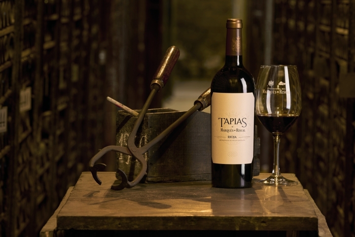 Tapias de Marqués de Riscal es un vino que busca recuperar el estilo original que la bodega elaboraba en sus primeros años, con cierta influencia bordelesa en los métodos de producción. Esta referencia se ha convertido en una apuesta prioritaria para la bodega dentro del mercado internacional y especialmente en La Place de Bordeaux.