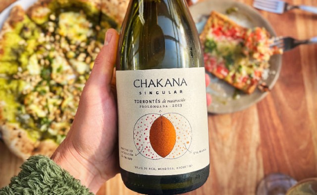 "Elaboramos este Torrontés de Maceración Prolongada desde hace ya 7 años con la idea de hacer un vino con una personalidad y un estilo diferente a lo que se venía ofreciendo", cuenta Leonardo Devia, Enólogo de Chakana. "Proviene de terroirs con suelo pedregoso y calcáreo, porque es el tipo de suelo que justamente proporciona la estructura que buscamos. Tiene una maceración larga de 8 meses, sin extracción mecánica. La uva se coloca directamente en huevos de concreto y se deja en contacto con sus pieles, sin moverlas, para que le aporten los taninos al vino. Así logramos un Torrontés con aromas que no son en los típicos aromas tropicales, sino que aparecen notas más más herbales y cítricos y , sobre todo, una estructura en la boca que se acompaña muy bien con la acidez. Todas estas características hacen que sea un vino con una personalidad y un estilo muy diferente a lo que ofrece en Argentina".