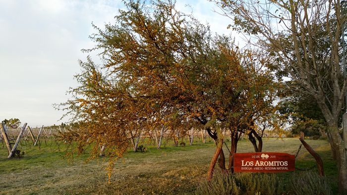 En honor al árbol nativo al espinillo que es un sinónimo del aromito. Ara es el nombre de los vinos, es una palabra en guaraní, una palabra raíz, a partir de las cuales se forman las demás palabras. Por eso las palabras raíces tienen muchos significados. Ara significa universo, día, época, era, ciclos, tiempo, cielo. Uno de los significados que hacemos nosotros con los significados de la palabra ara es con lo que sucede en las vides, en los ciclos, que se van repitiendo año tras año.