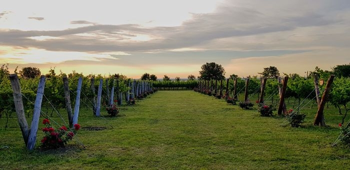 El viñedo se encuentra enmarcado en un mosaico de montes ribereños y sembradíos propios de la fértil pampa ondulada, donde las vides se disponen en sentido Norte-Sur descendiendo desde una suave lomada hasta toparse con la floresta. Esta situación propicia un buen drenaje de agua, habilita brisas frecuentes y permite una mayor amplitud térmica, características que benefician positivamente la producción de las uvas.