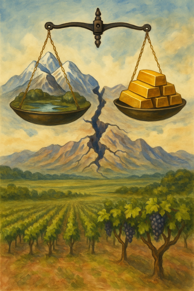 Mendoza, principal región productora, depende en un 85% del riego de cuencas hídricas sensibles que están bajo presión por la minería y el cambio climático, lo que genera estrés hídrico y afecta la calidad del agua para riego. Además, certificaciones internacionales y mercados premium exigen cada vez más prácticas responsables y criterios ESG (ambientales, sociales y de gobernanza), haciendo irrelevante cualquier retroceso ambiental o conflicto socioambiental que pueda afectar la trazabilidad y la imagen de las bodegas argentinas.