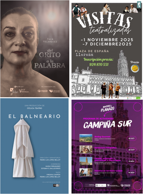 El primer plan comienza el 1 de noviembre y tendrá lugar hasta el 7 de diciembre, para ello os proponemos disfrutar con la compañía llerenense 'Teatro de papel', unas visitas teatralizadas en colaboración con la Oficina de Turismo. Estas visitas están enmarcadas en la programación de 'Luce Llerena, Otoño iluminado'. Se trata de un recorrido por los grandes monumentos y espacios emblemáticos de Llerena donde los personajes más ilustres cobrarán vida. El precio será de 2 euros por persona.