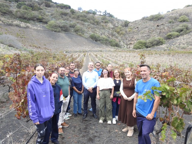 La visita a la Bodega Los Lirios les permitió disfrutar de un recorrido encantador por los viñedos y bodega, donde descubrieron el arte y la pasión detrás del proceso artesanal. Además, el grupo se deleitó con una cata de su vino tinto exclusivo, acompañada de un picoteo con sabores auténticos de Gran Canaria.
