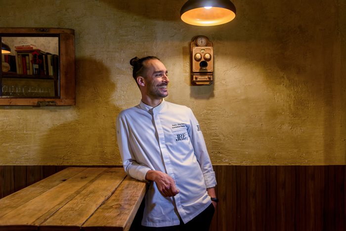 Pablo Sánchez es un cocinero de 35 años con una historia personal que lo ha llevado a forjar un estilo único. Desde pequeño, la cocina formó parte de su vida de la mano de su padre, quien, además de cocinar en casa, le transmitió el gusto por la gastronomía y se convirtió en una figura clave en su interés por esta profesión. Más adelante, durante los campamentos de scouts, mientras convivía con la naturaleza, disfrutaba preparando comidas para sus compañeros, una actividad que consolidó aún más su afinidad por la cocina. Aunque inició sus estudios universitarios en ingeniería, siempre tuvo claro que su destino estaba en la gastronomía. Ya como chef, en Paradores trabajó la cocina tradicional, y a su paso por ciudades como Córdoba, León, Málaga y Mallorca, fue acumulando experiencias que, con el tiempo, le permitieron abrazar un enfoque más gastronómico y contemporáneo en su estilo.