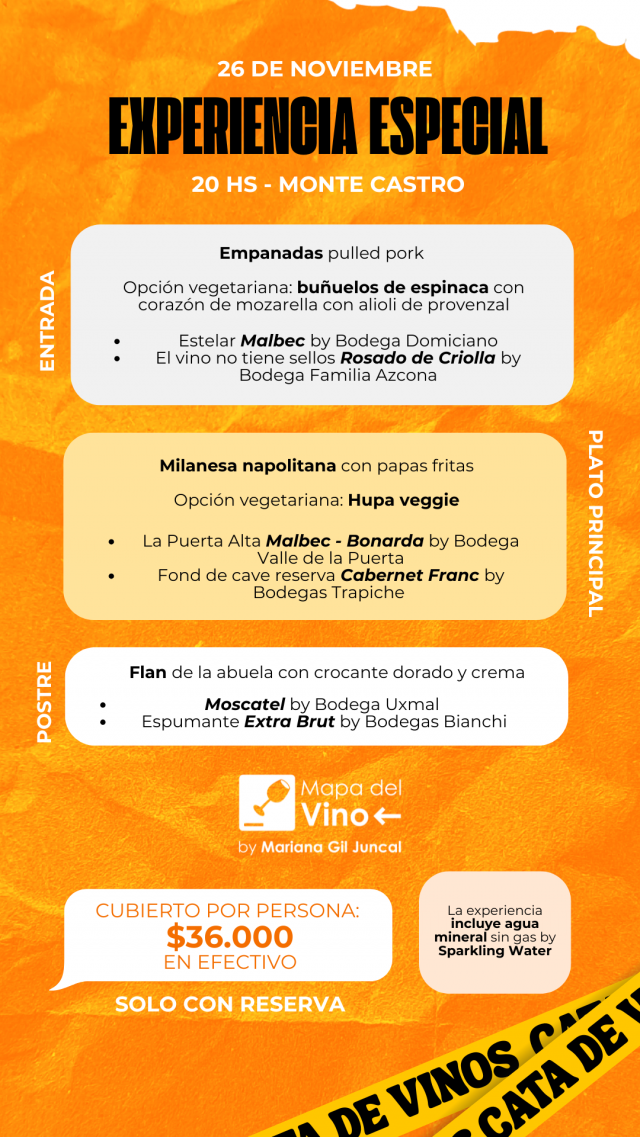 Para celebrar el día del vino el próximo miércoles 26 de noviembre a las 20 se viene un encuentro en Hupa de Montecastro (Juan Agustín García 3989, CABA) en donde Mariana Gil Juncal, sommelier, seleccionará una dupla de vinos para cada paso.