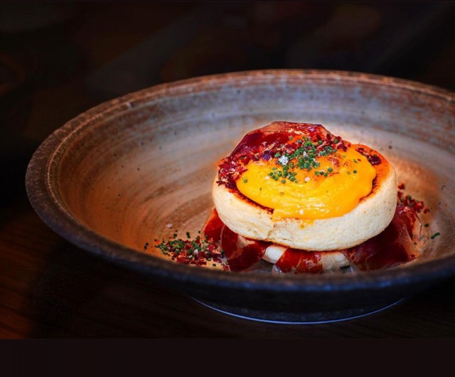 Este brunch gastronómico refleja el alma de Kabuki Madrid, restaurante galardonado con una estrella Michelin y un Sol Repsol. El menú abre con el sakizuke, un bocado pensado para marcar el tono: la Senbei Toro, una galleta de arroz crujiente con ventresca de atún y salsa mexicana pastor que combina textura, grasa y frescor con una limpieza muy japonesa.